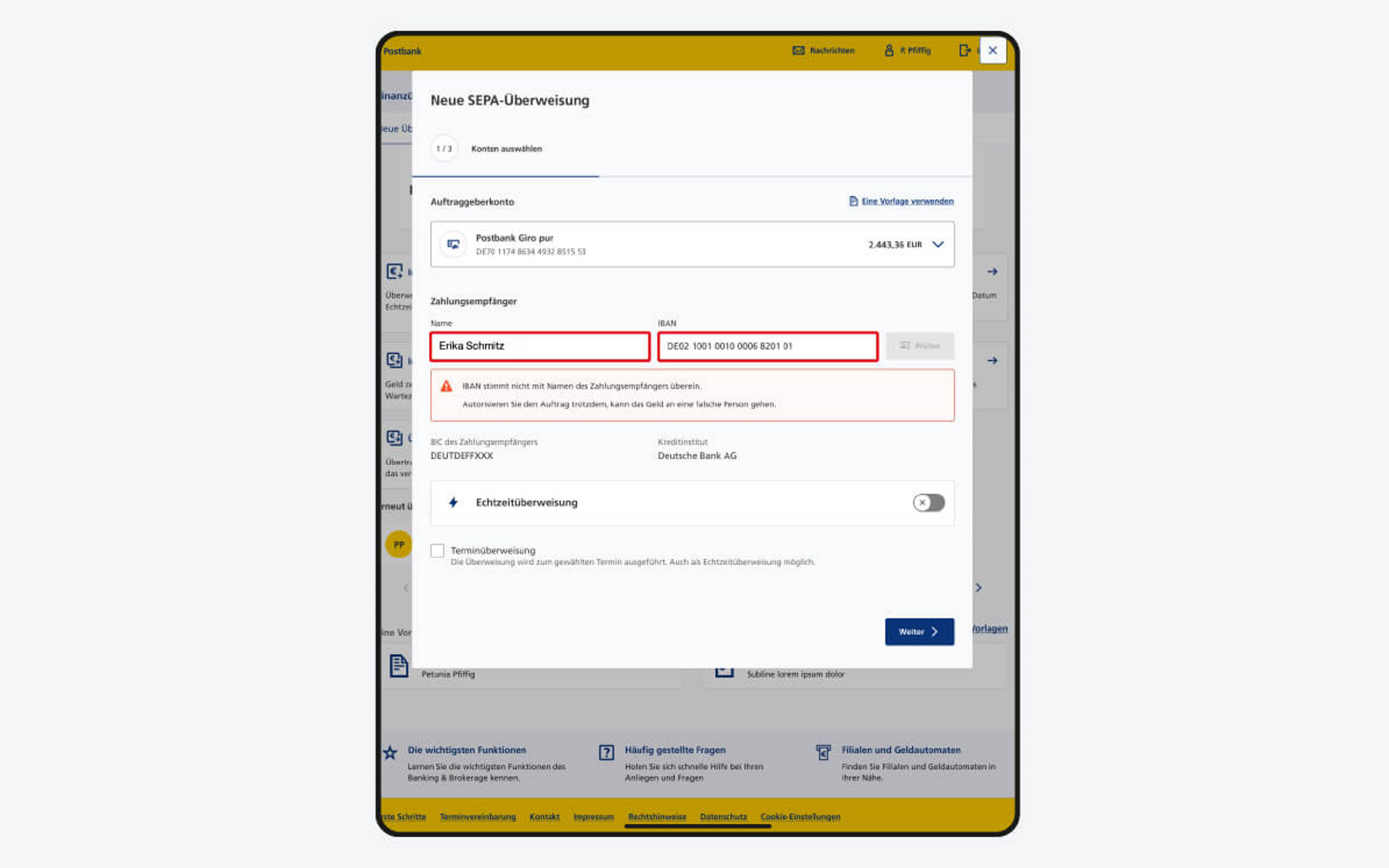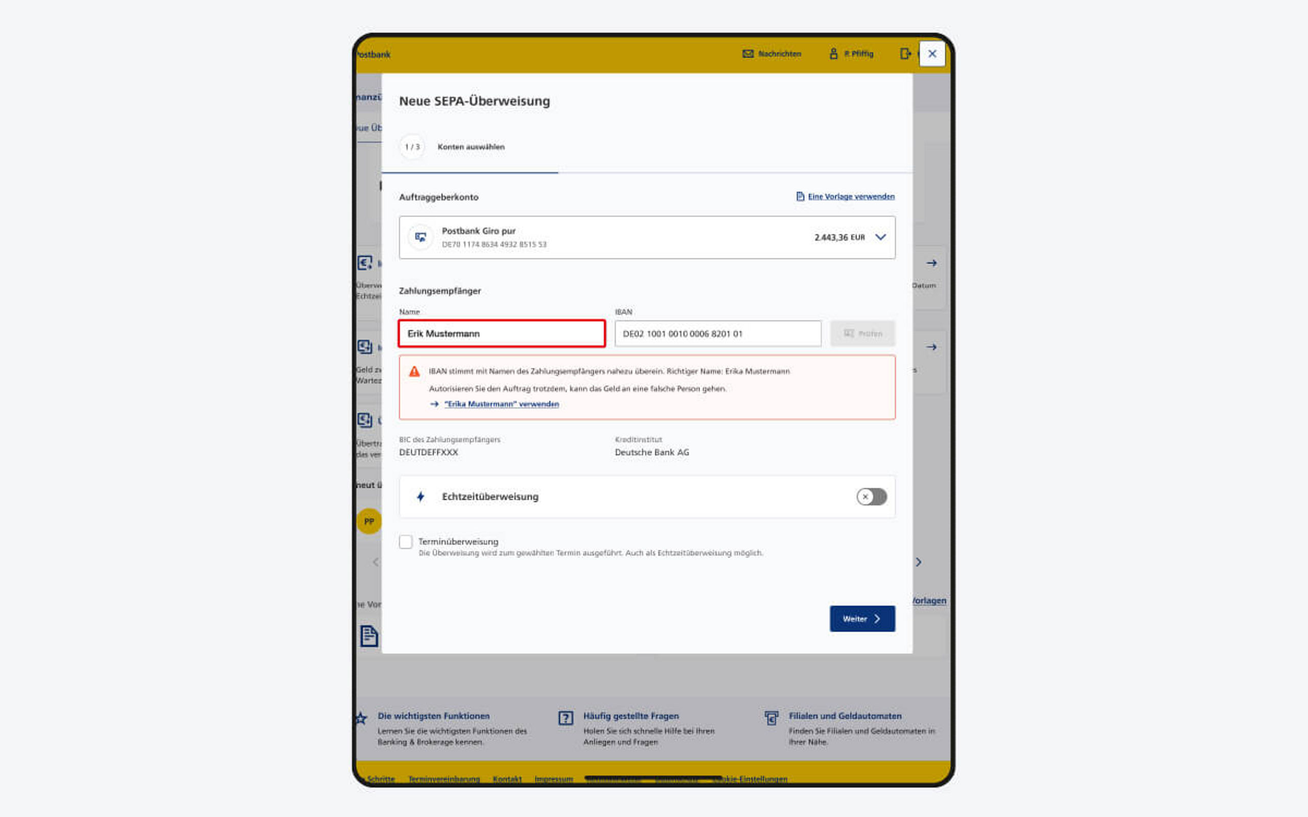 - Sicherer: Im Zuge der Empfängerüberprüfung werden der Name und die IBAN des Empfängers abgeglichen. Dies soll betrügerische oder fehlgeleitete Zahlungen verhindern und den Schutz des Auftraggebers erhöhen.