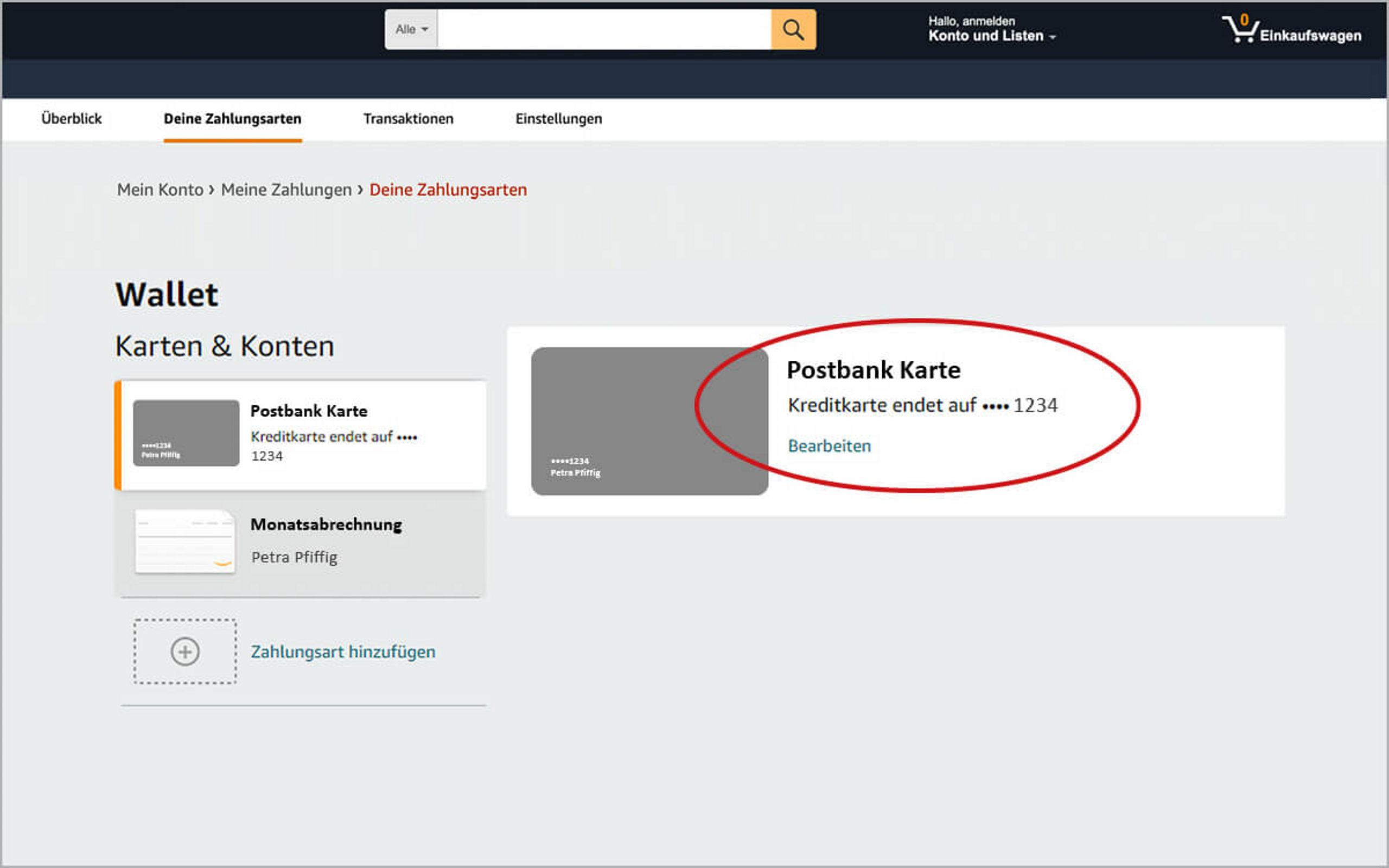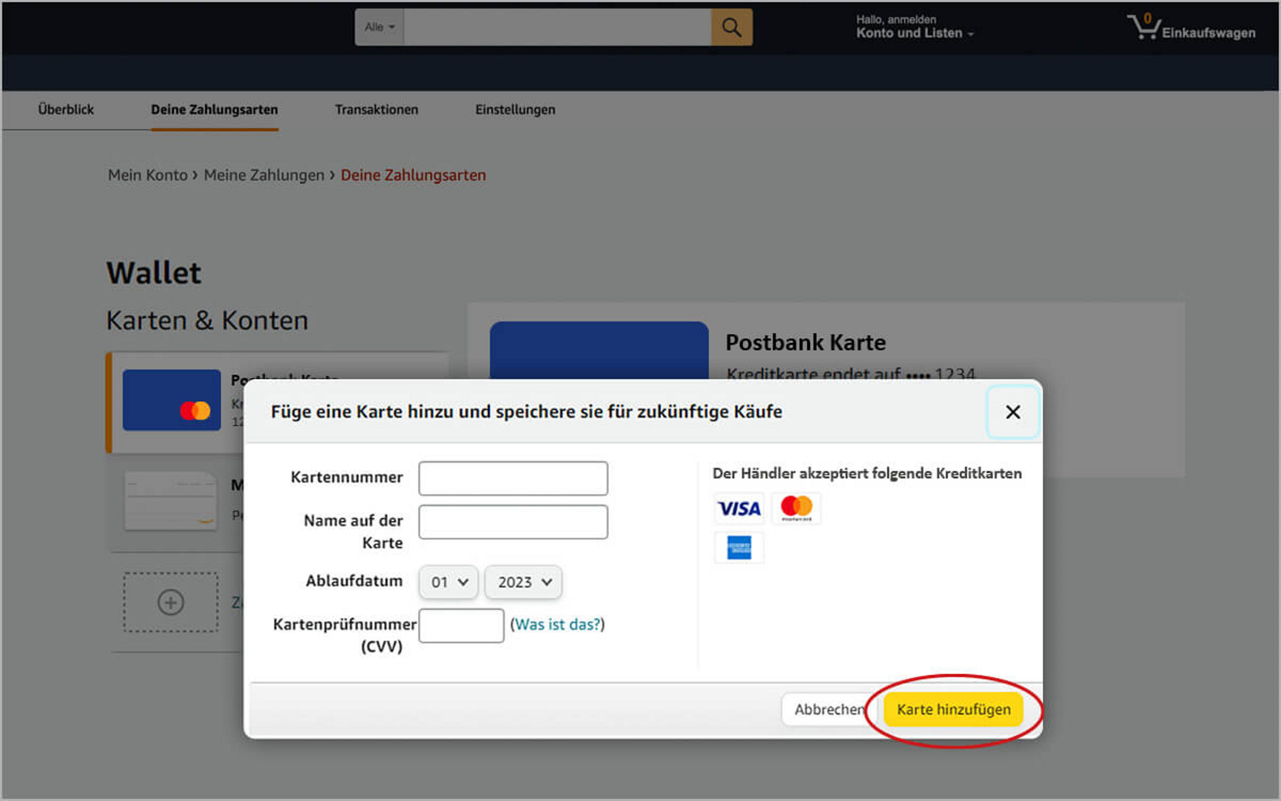 Amazon: So hinterlegen Sie Ihre Postbank Mastercard