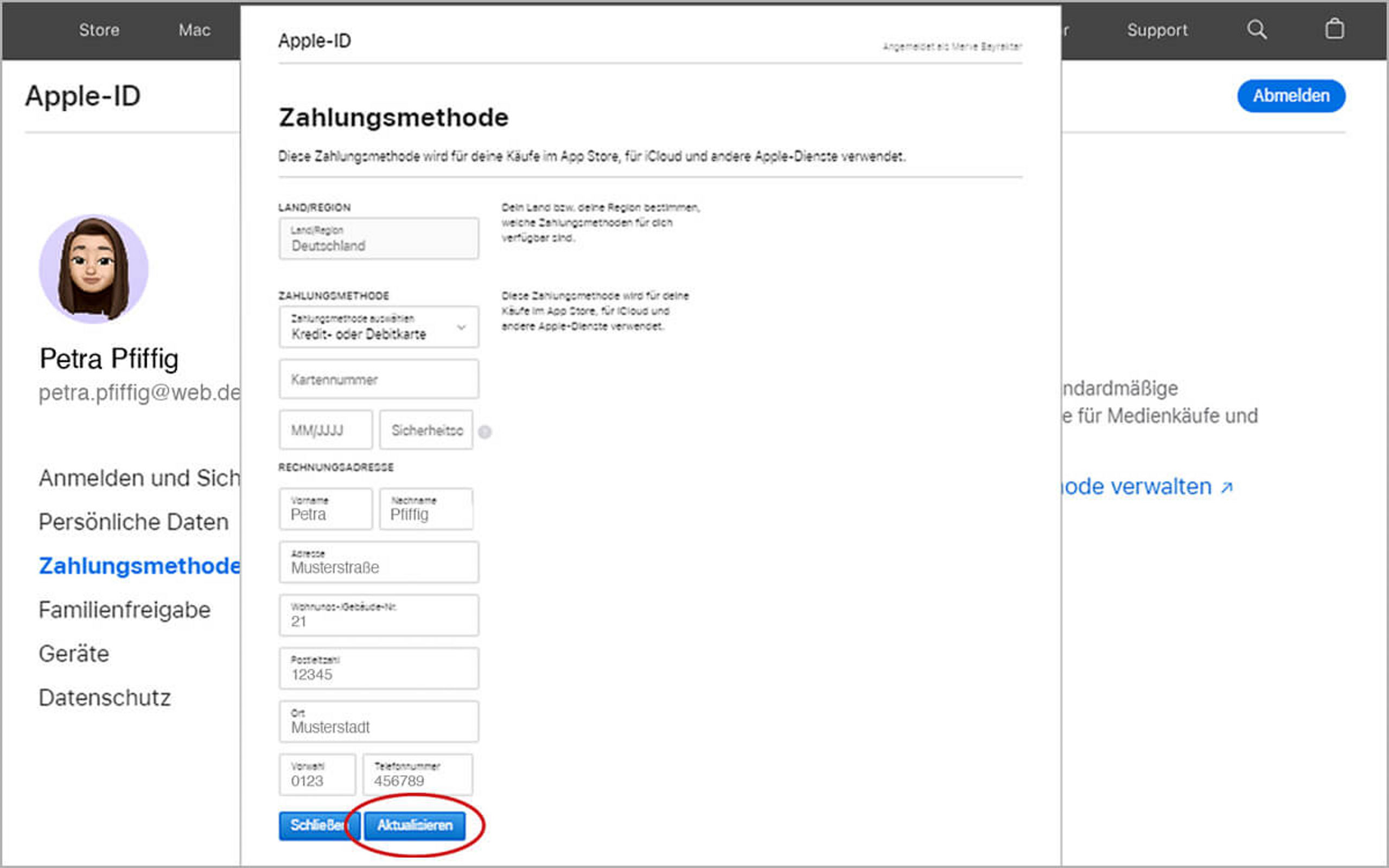 Ihre Zahlungsmethoden für iTunes verwalten Sie über Ihre Apple ID.