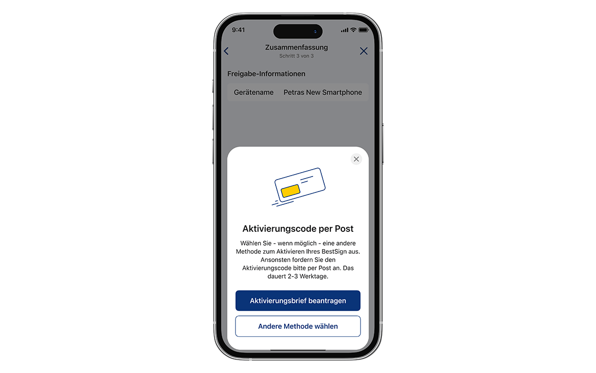 Für die Aktivierung von BestSign mit einem Zusatzgerät ist der Aktivierungscode per Brief zwingend erforderlich.
