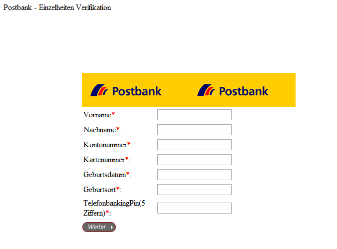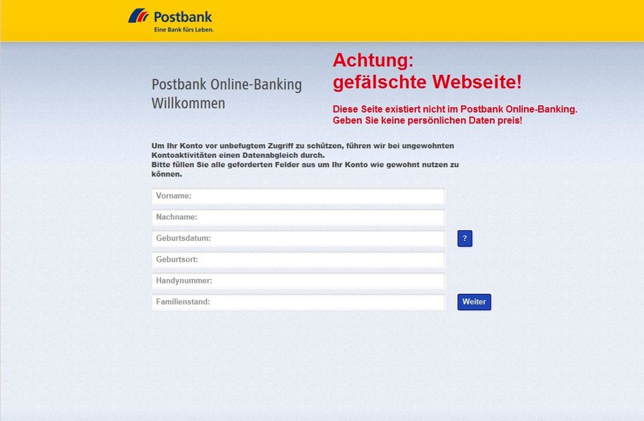 Geben Sie keine Daten ein! Diese Seite stammt nicht von der Postbank!