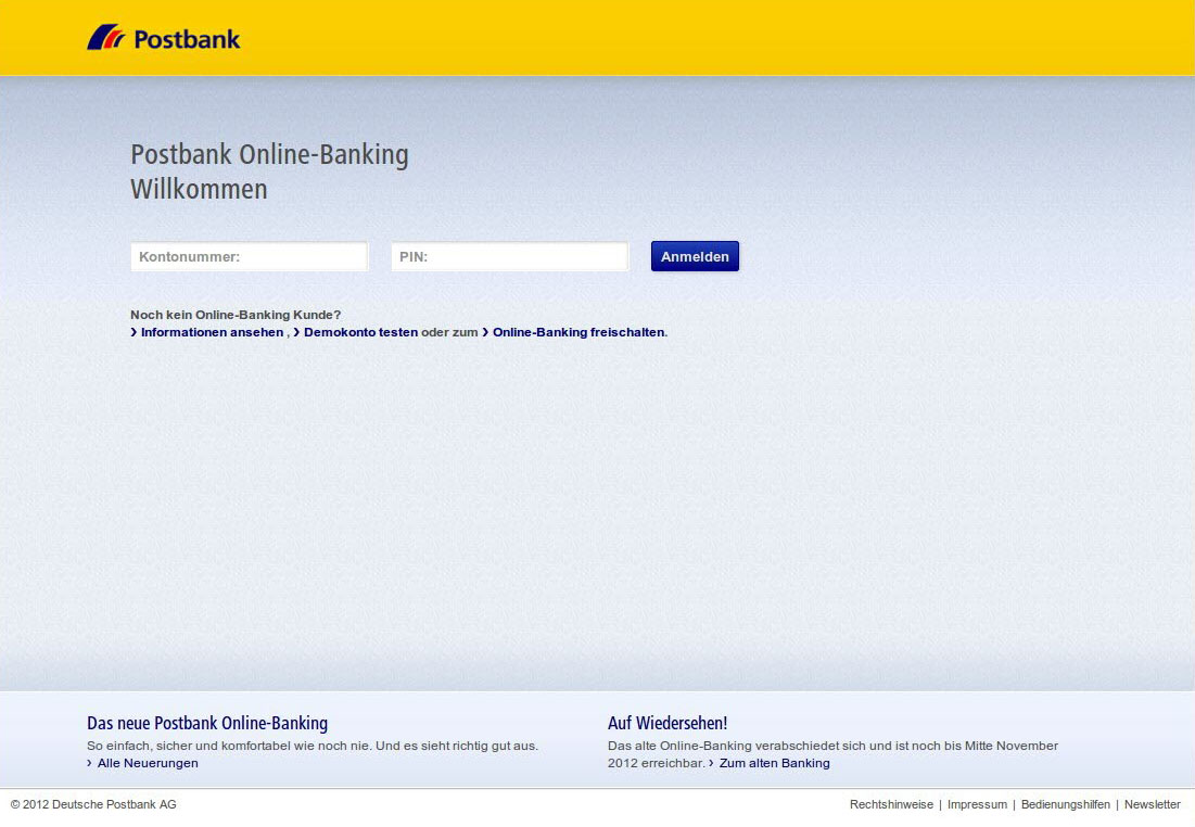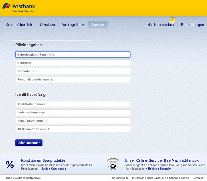 Daraufhin erscheint die nächste Seite, die dem Postbank Online-Banking sehr ähnlich sieht.